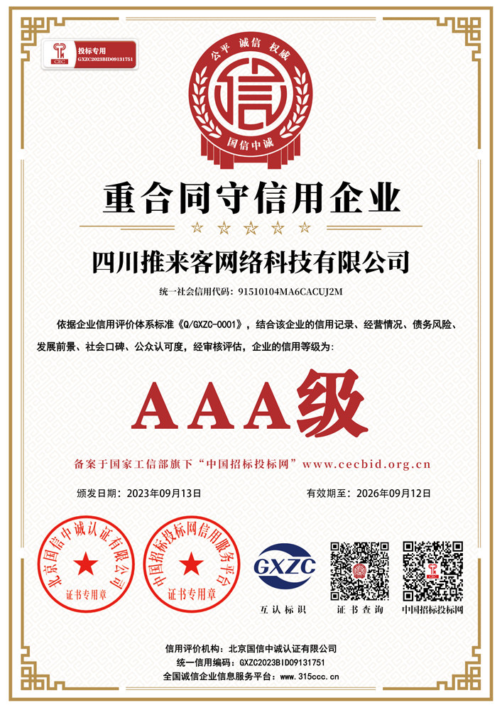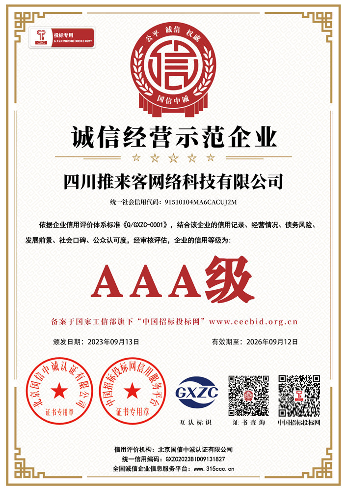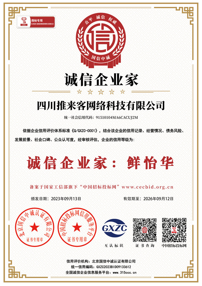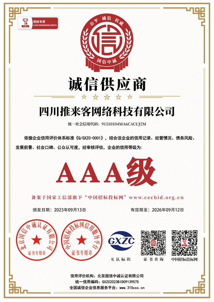 四川推来客网络科技有限公司(以下简称推来客)是一家为中小微企业提供全网整合营销推广解决方案和网站建设服务商